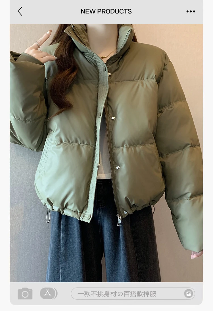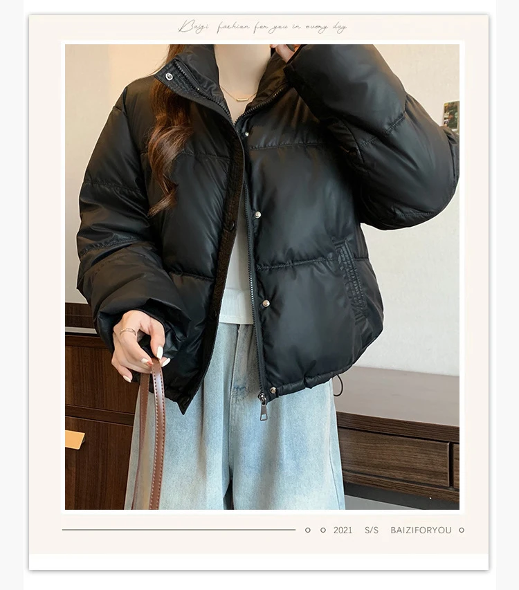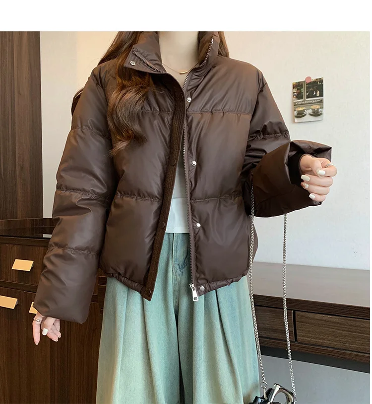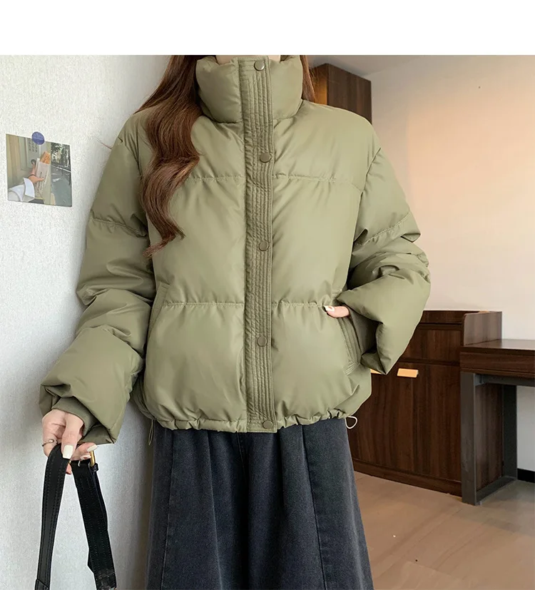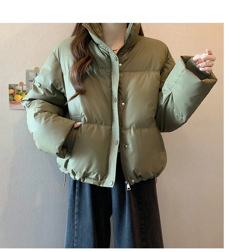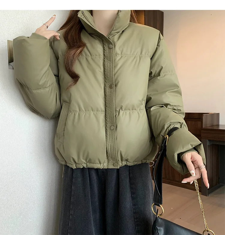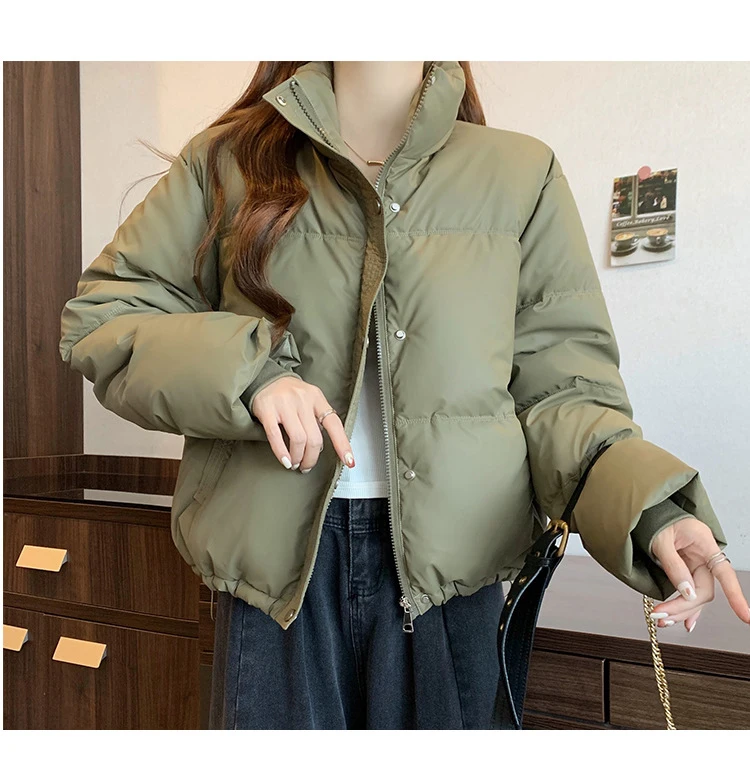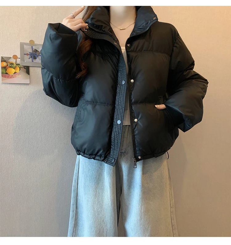 2024 New Autumn Winter Puffer Parkas Womens Fashion Stand Collar Down Cotton Coat Korean Short Winter Jacket Windproof Warm Coat